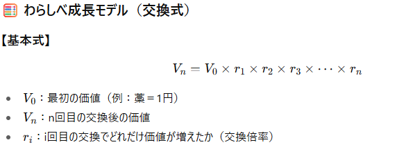 | ■上記の式の仕組みで、1,000円で車や家が買えるようになりました。 わらしべ長者の特徴は、1円にも満たない藁でいきなり馬や屋敷と交換できたわけではなく、いくつかのステップを段階的に上がっていったことです。(成長曲線) 当サイトは、1,000円の参加費で車や家が買えるサービスですが、1,000円で車や家を買うためには、ただ1,000円を増やすだけでは限界があり、とても車や家には届きません。 そこで、わらしべ長者と同様に、いくつかのステップと下記の6つの仕組みを構築して、1段ずつ成長していくことで、これが可能になりました。それが上記の式です。 |